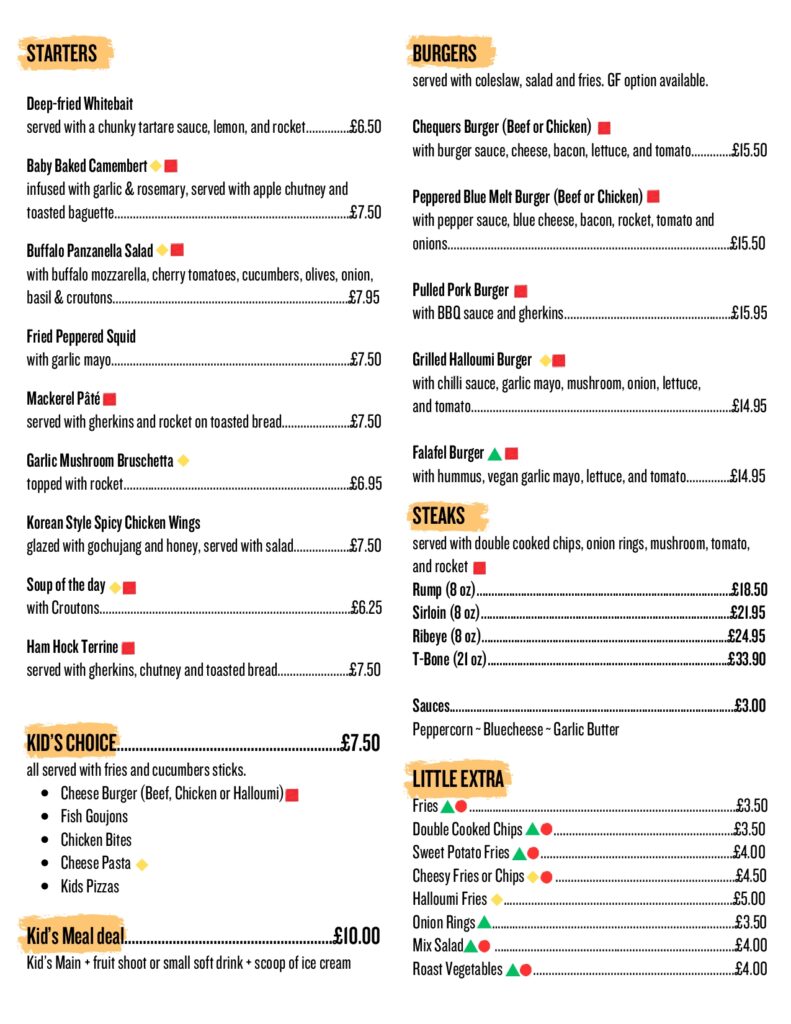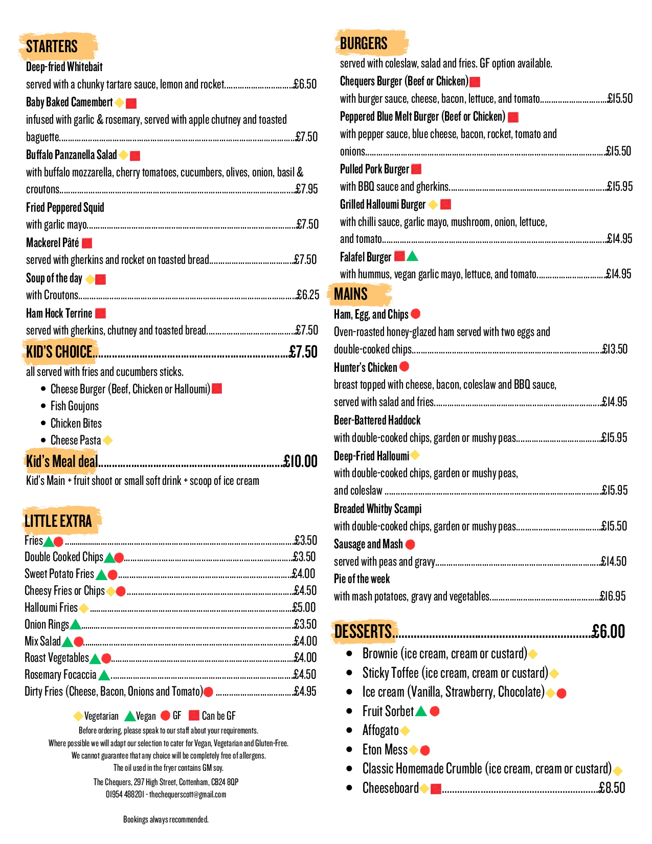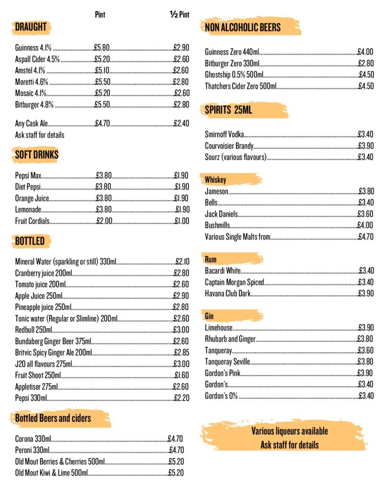 Our restaurant menu features pub classics with lighter options for lunchtimes, as well as a Sunday Roast.